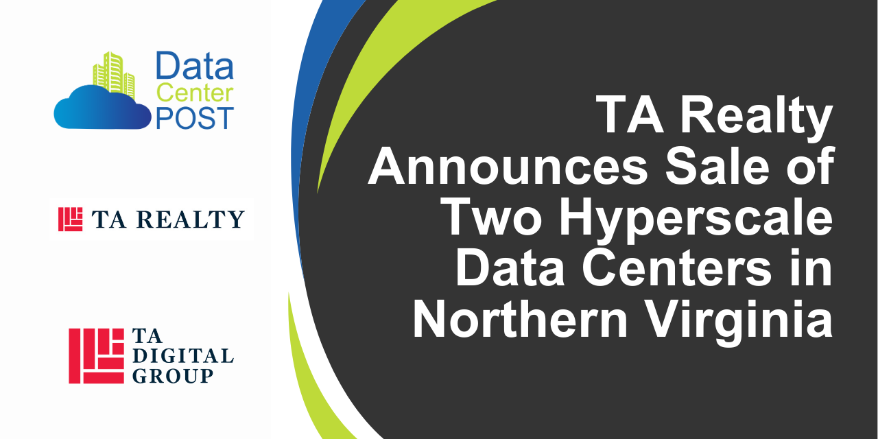 TA Realty and its data center development arm, TA Digital Group, have completed the sale of two hyperscale data center buildings totaling 745,000 square feet and 165MW of IT load capacity in Leesburg, Virginia. The facilities mark its first two completed and fully leased buildings within a planned five-building, 450MW hyperscale campus designed for a single hyperscale cloud tenant.